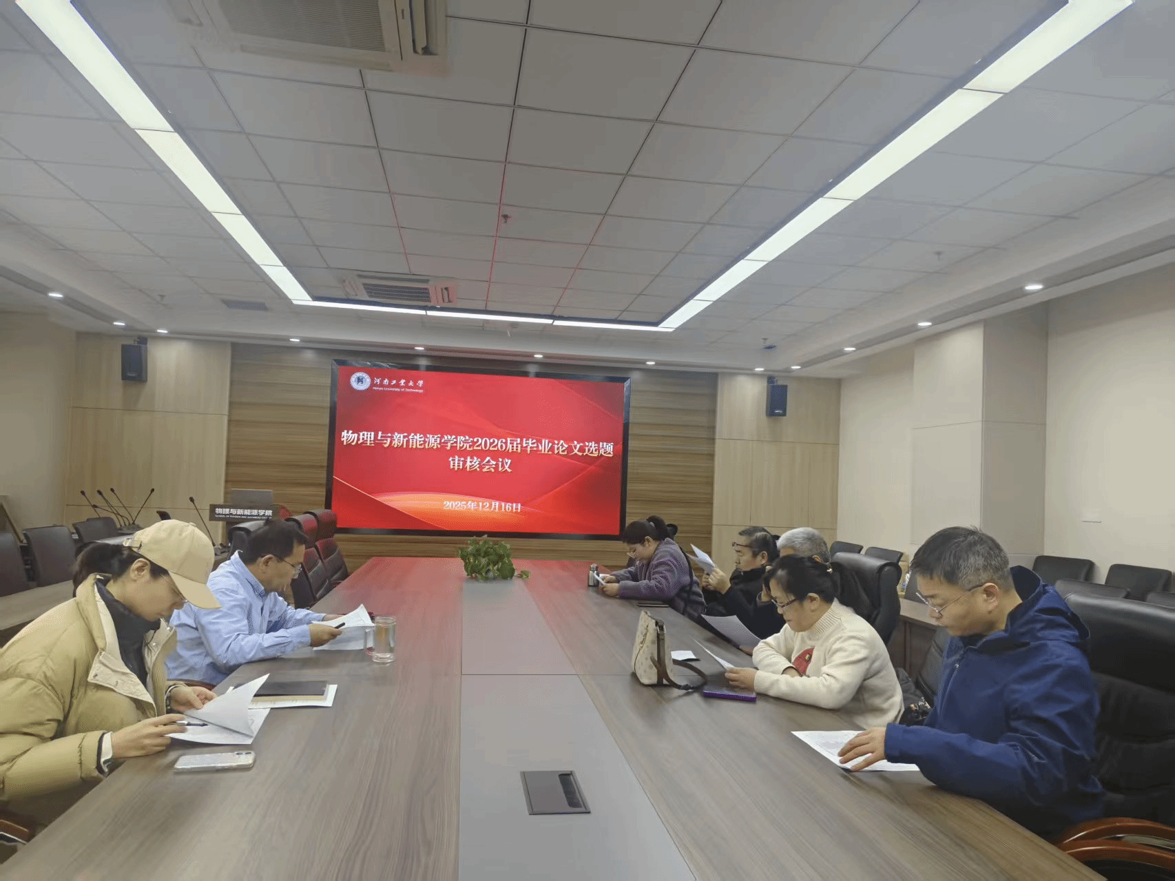 为进一步规范毕业论文管理,保障本科毕业论文质量,切实提升学生创新与实践能力,12月16日下午,物理与新能源学院在惟德楼307会议室组织召开了2026届本科毕业论文选题审核会议。会议由学院副院长罗艳伟主持,学院学术委员会全体成员参加了会议。