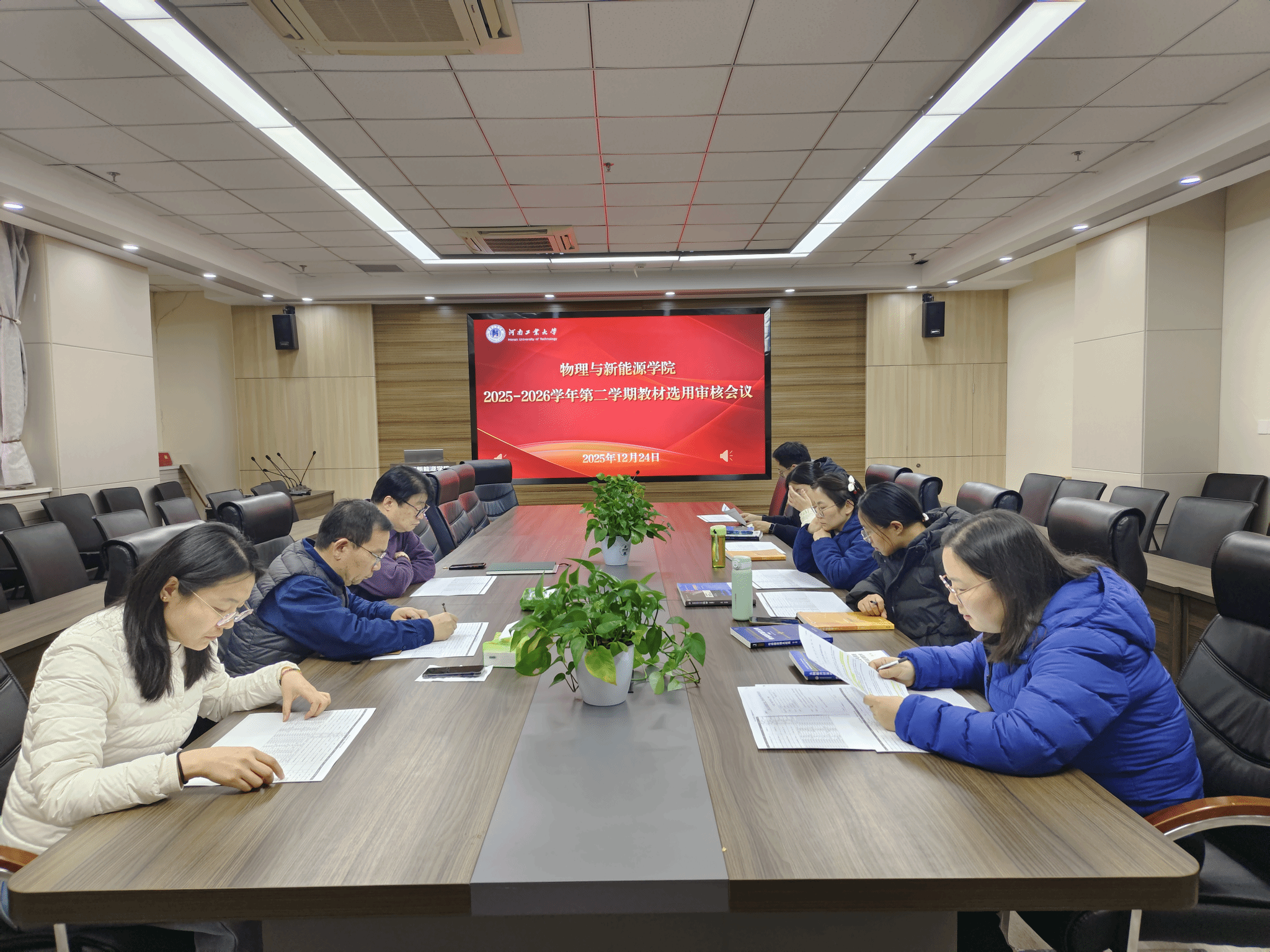 为深入贯彻落实国家及学校教材建设与管理相关政策,确保教材选用工作的规范性与科学性,2025年12月24日下午,物理与新能源学院在惟德楼307会议室组织召开了2025-2026学年第二学期教材选用审核会议。会议由副院长罗艳伟主持,院长赵新为及学院教学指导委员会全体成员出席了会议。